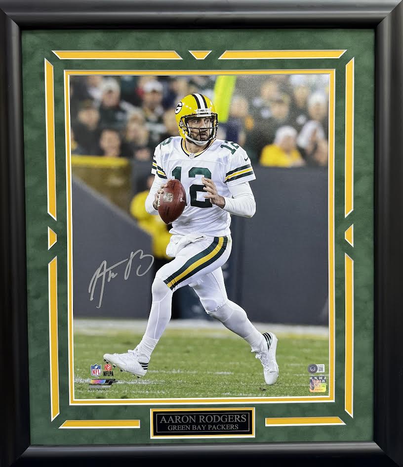 Aaron Rodgers Autographed Hand Signed Custom Framed 16x20 Green Bay Packers Photo - Beckett COA