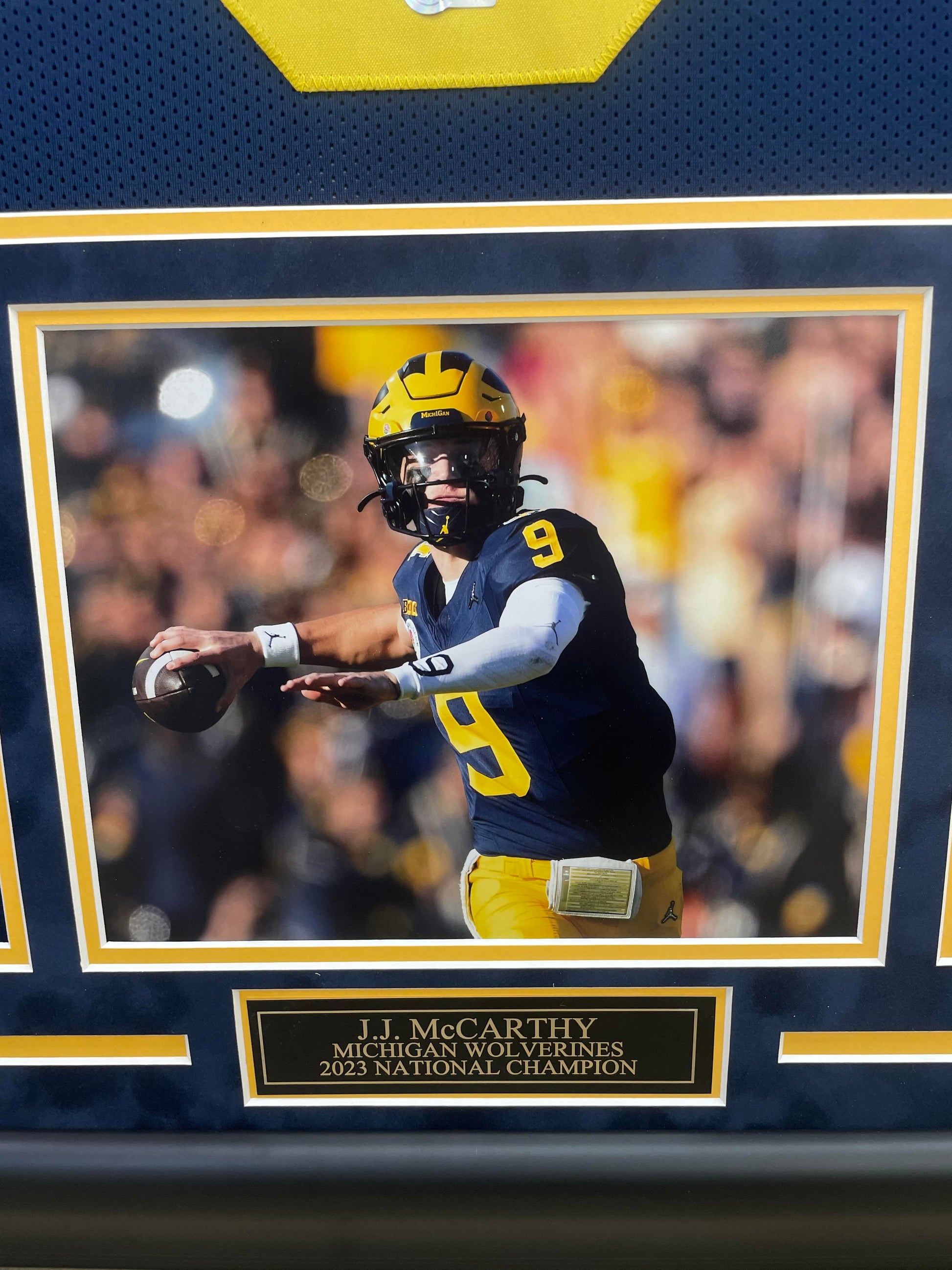 JJ McCarthy Autographed Hand Signed Custom Framed Michigan Wolverines Jersey - Beckett COA