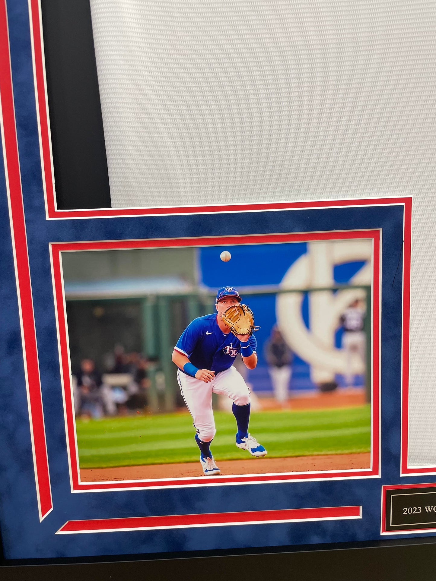 Josh Jung Autographed Hand Signed Custom Framed Texas Rangers Jersey - Beckett COA