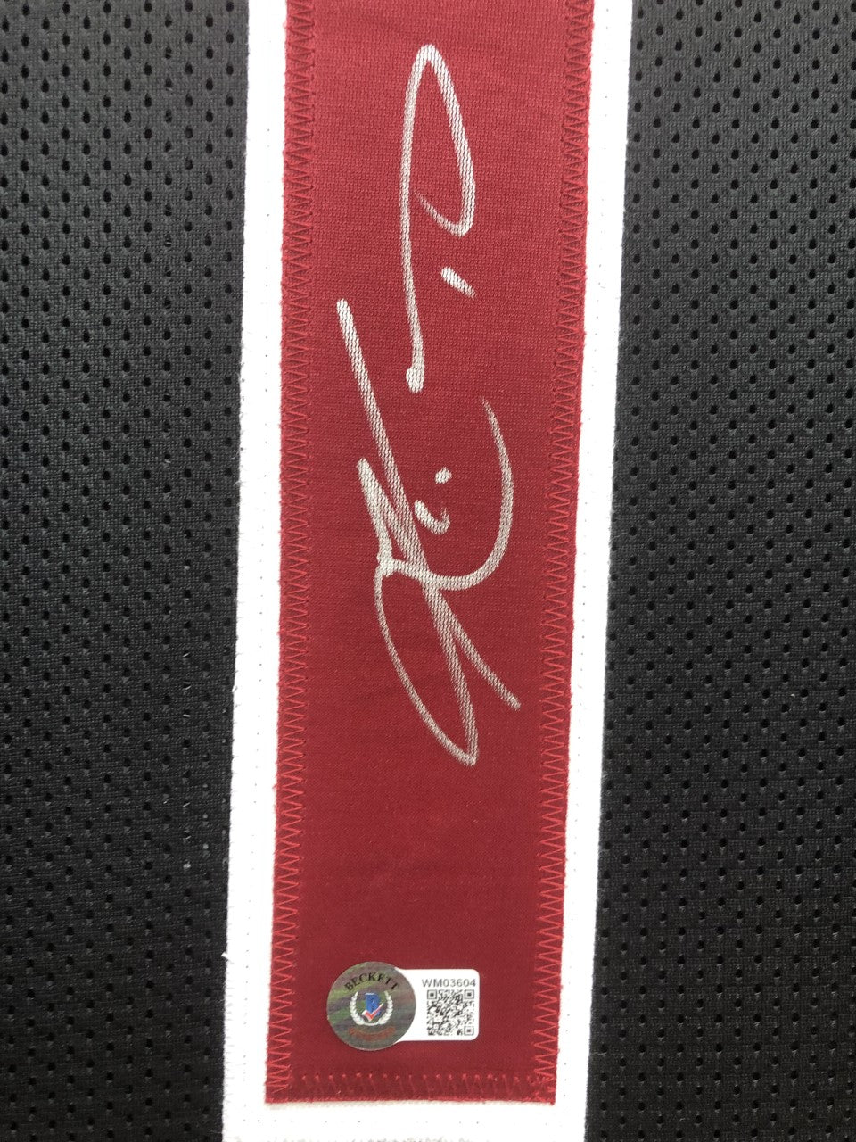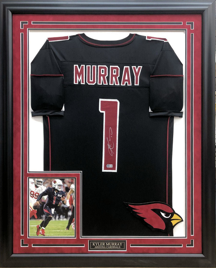 Kyler Murray Autographed Hand Signed Custom Framed Arizona Cardinals Jersey, certified by Beckett. This jersey is masterfully framed as the jersey is hand sewn rather than glued or stapled to ensure the jersey is not damaged in any way during the framing process. All of our materials are museum quality and acid free, not just cheap acid buffered paper matting. The suede matting, color combo, and white bevels really make this jersey POP like few jersey framings do! Feel free to reach out with any questions!