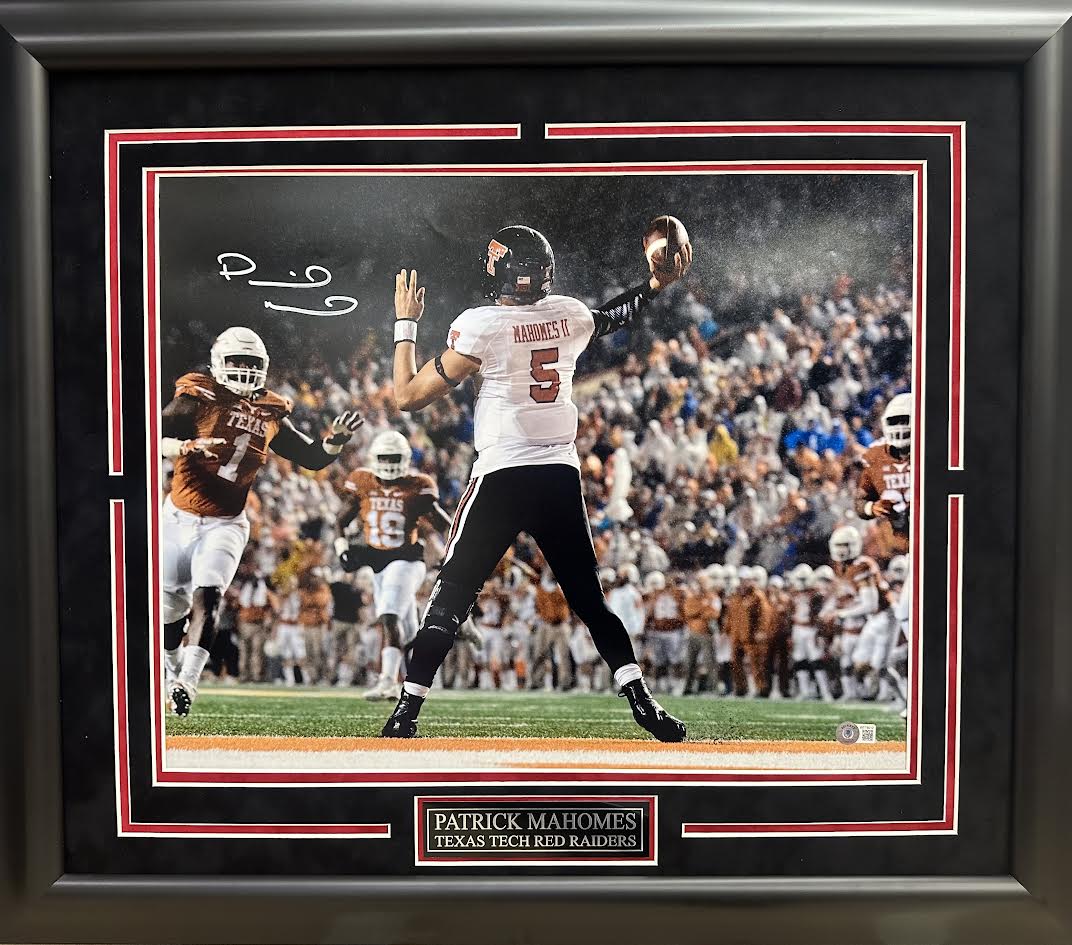 Patrick Mahomes Autographed Hand Signed Custom Framed 16x20 Texas Tech Photo - Beckett COA