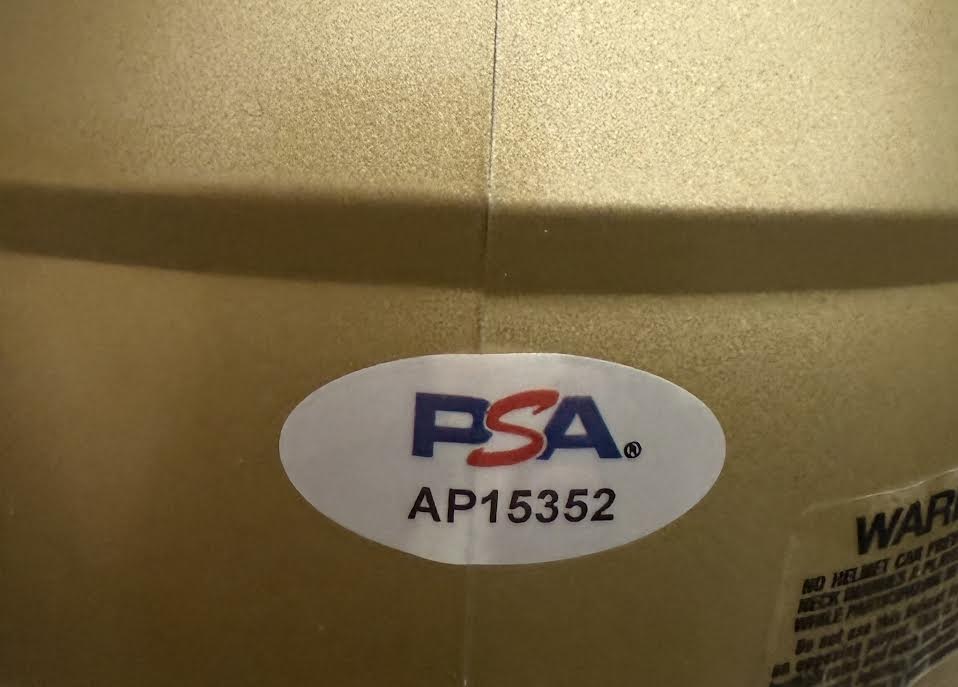 This hand signed mini helmet has been authenticated by a PSA hologram.