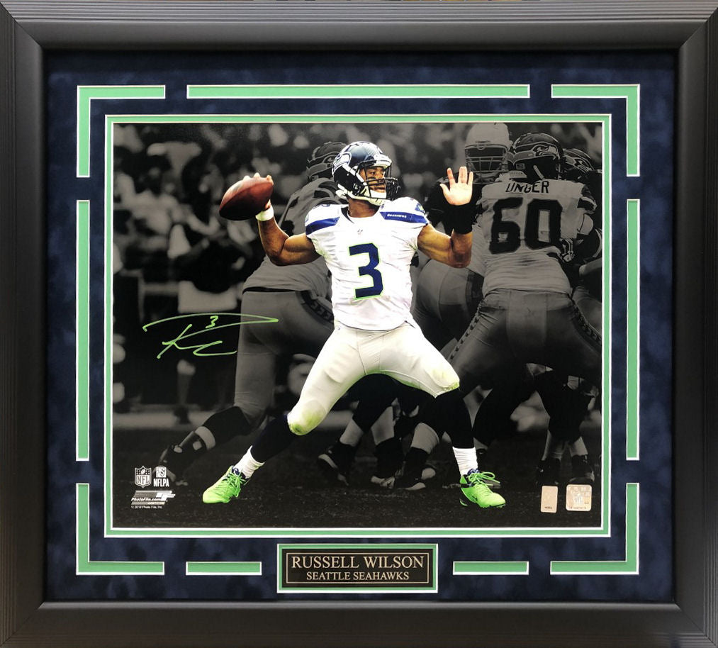 Russell Wilson Autographed Hand Signed Custom Framed 16x20 Seattle Seahawks Photo