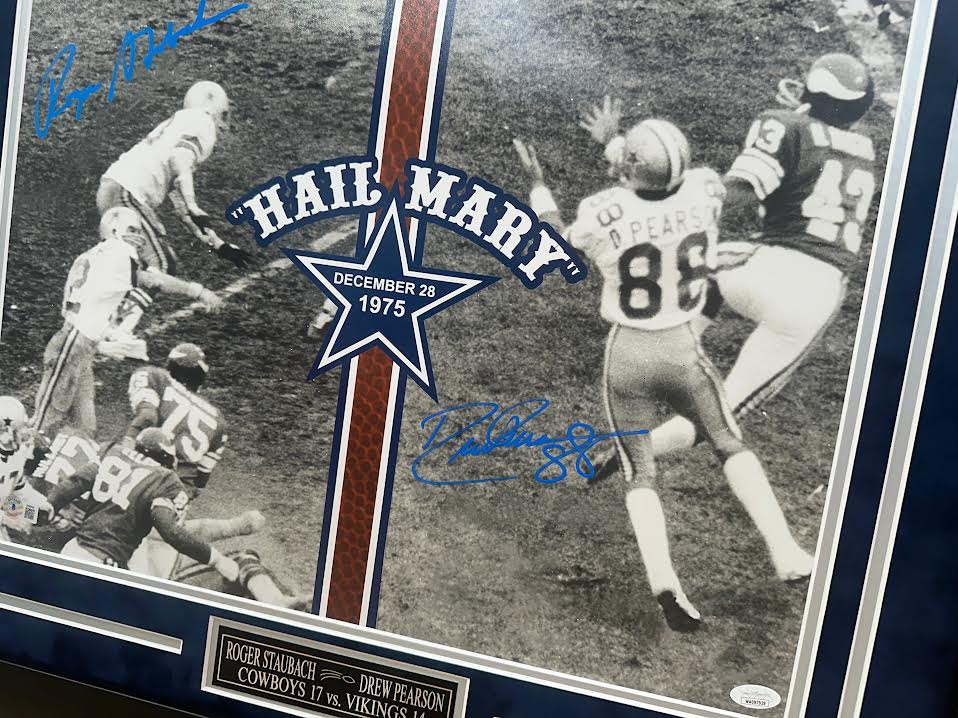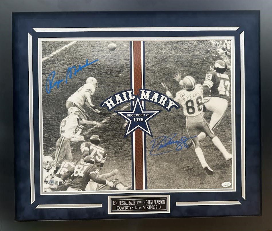 Staubach & Pearson Autographed Hand Signed Custom Framed "Hail Mary" 16x20 Photo