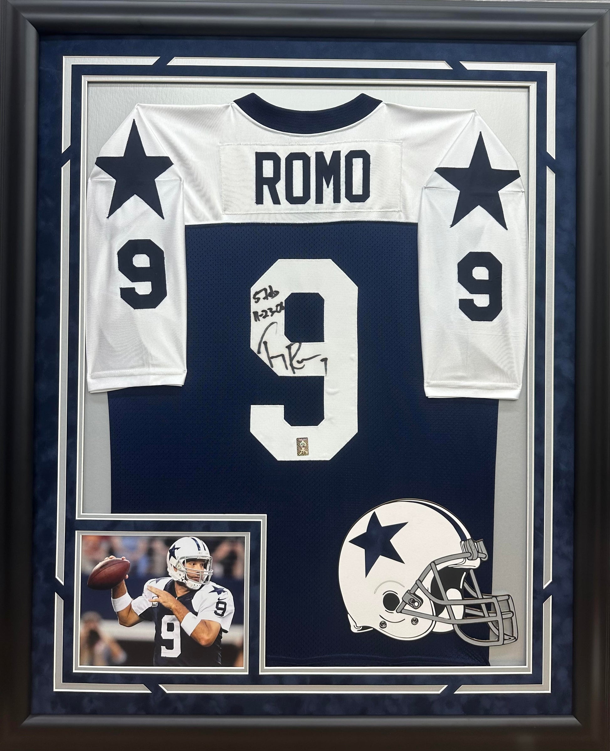 Tony Romo Autographed Hand Signed Custom Framed Dallas Cowboys Jersey